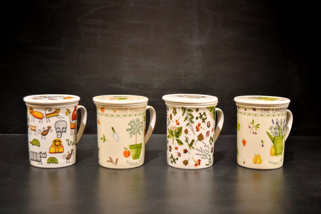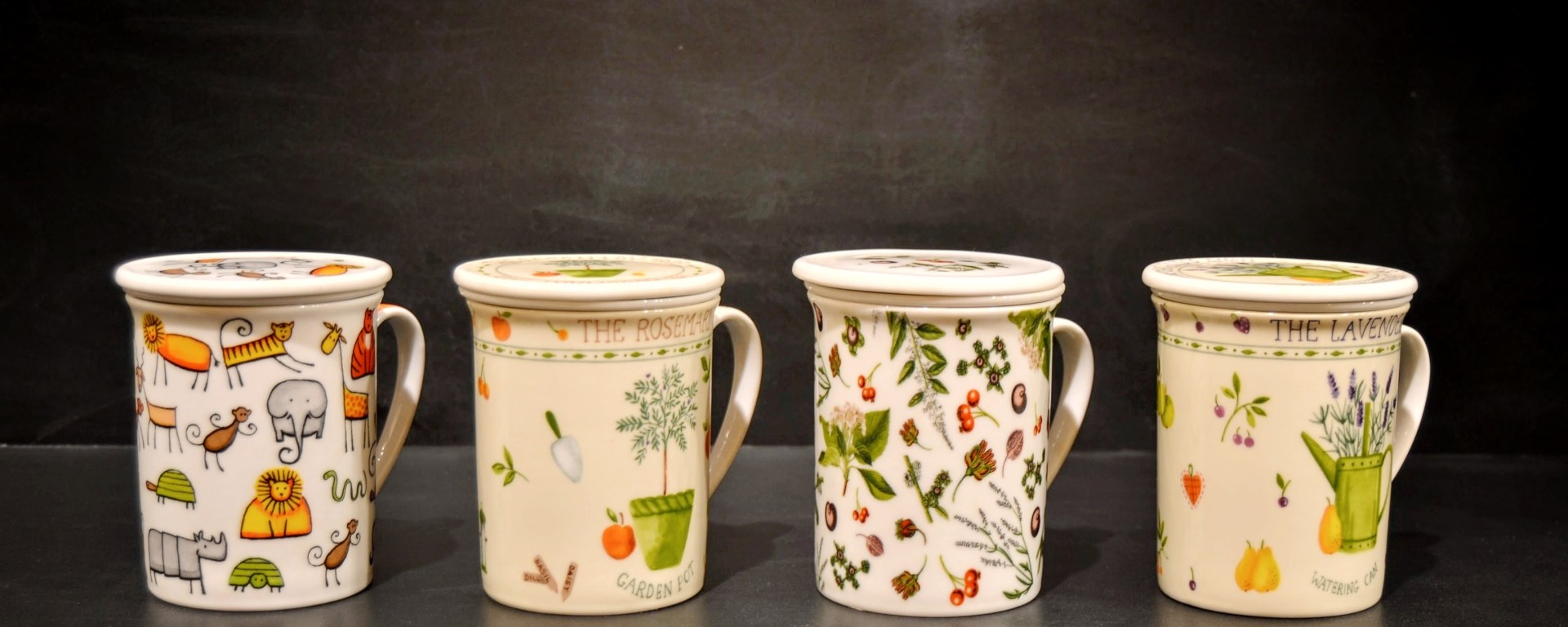 Tisaniera in porcellana (350 cc) con filtro incorporato. Disponibile in 5 fantasie diverse.
