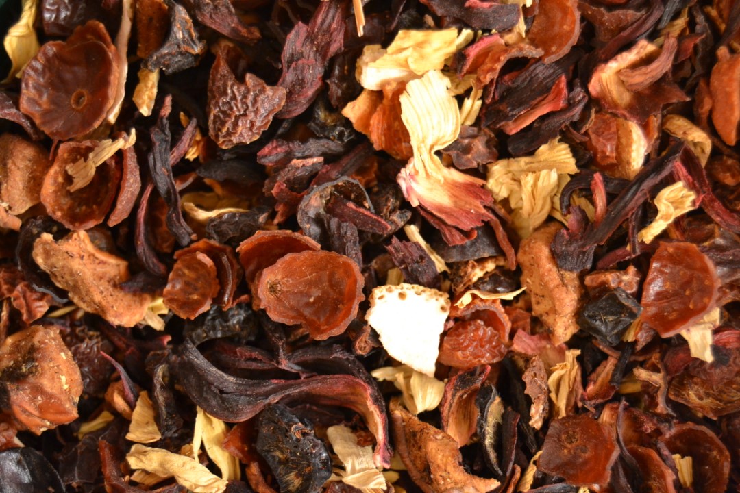 Infuso a base di rosa canina, karkadè, scorza d’arancio, mela, petali di girasole e aromi. Completamente privo di caffeina, con effetti diuretici e digestivi, dissetante in estate e corroboranti in inverno.