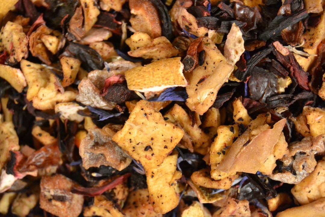 Infuso a base di Karkadè e rosa canina con pezzetti di frutta disidratata (frutti di sambuco, mela pera, albicocca), fiordaliso, scorze di agrumi, fiori, spezie e aromi. Completamente privo di caffeina, con effetti diuretici e digestivi, dissetante in estate e corroboranti in inverno.