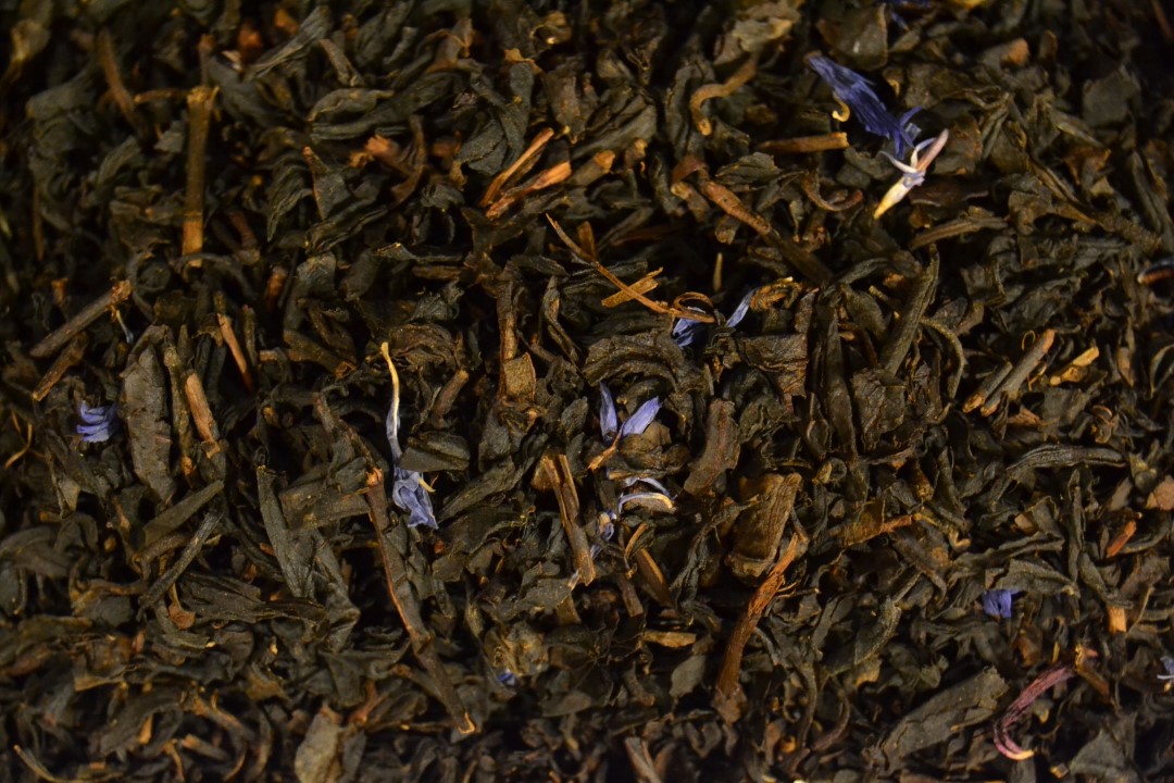 Un tè aromatizzato che utilizza la base di un tè nero cinese, arricchito di fiori di fiordaliso ed aroma di violetta. Insolito, raffinato, dal profumo “antico”.