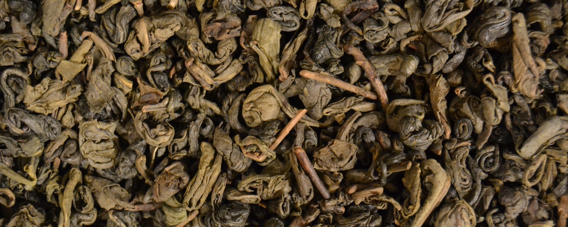 E’ il tè verde più bevuto al mondo. si caratterizza per la foglia arrotolata a mano a ricordare piccole palline di polvere da sparo. Tè a basso contenuto di teina, vanta tutte le proprietà salutari dei tè verdi. E’ tradizionalmente utilizzato in Marocco per preparare l’Ataay Naa Naa, bevanda nazionale preparate aggiungendo al tè foglie di menta fresca e zucchero. Il nome originale è Zhu Cha, perle di tè.